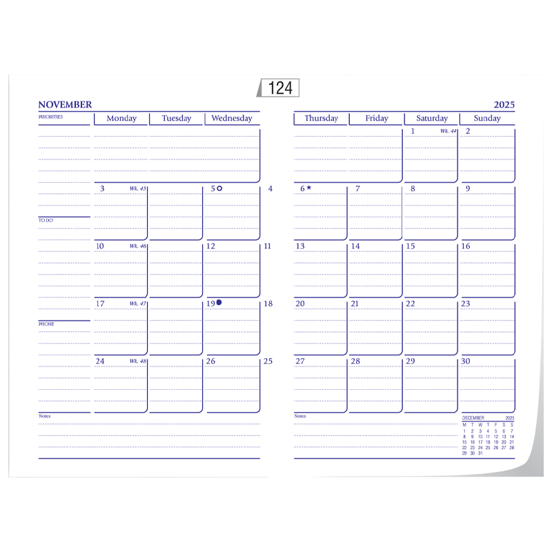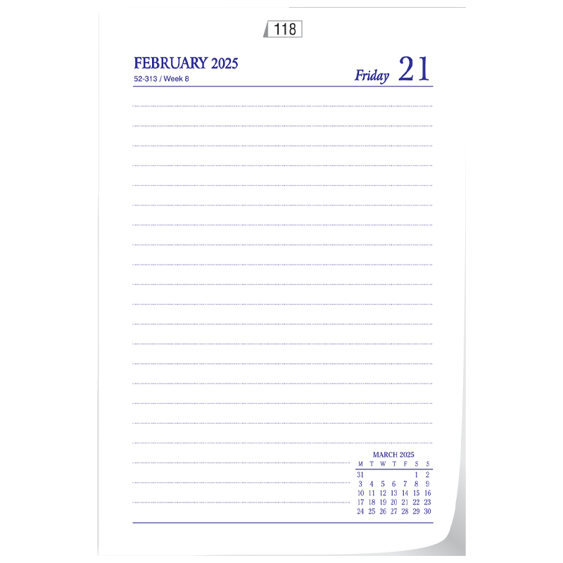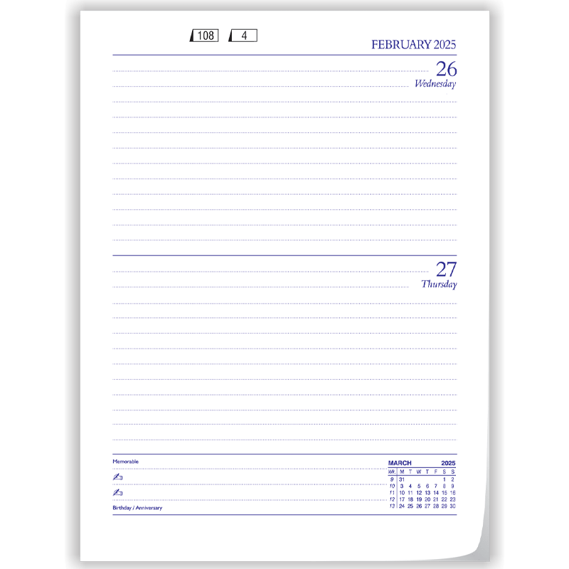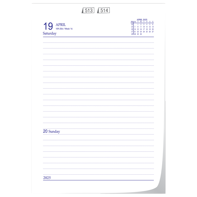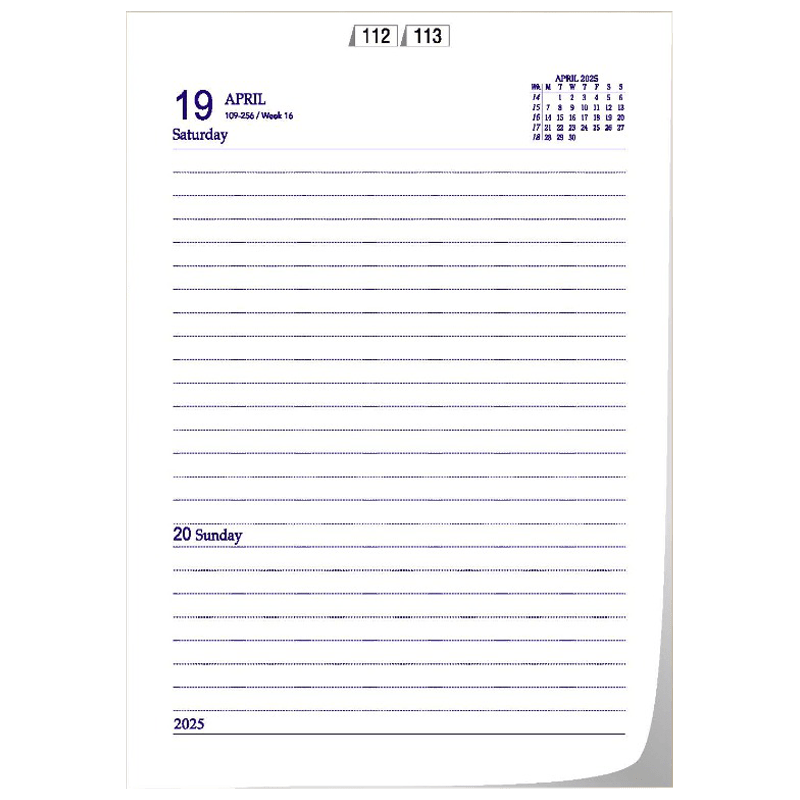 Platinum Series (Mega) 501 8 ¼ " X 10 ½ " (approx.) One day in a page Sat & Sunday Clubbed