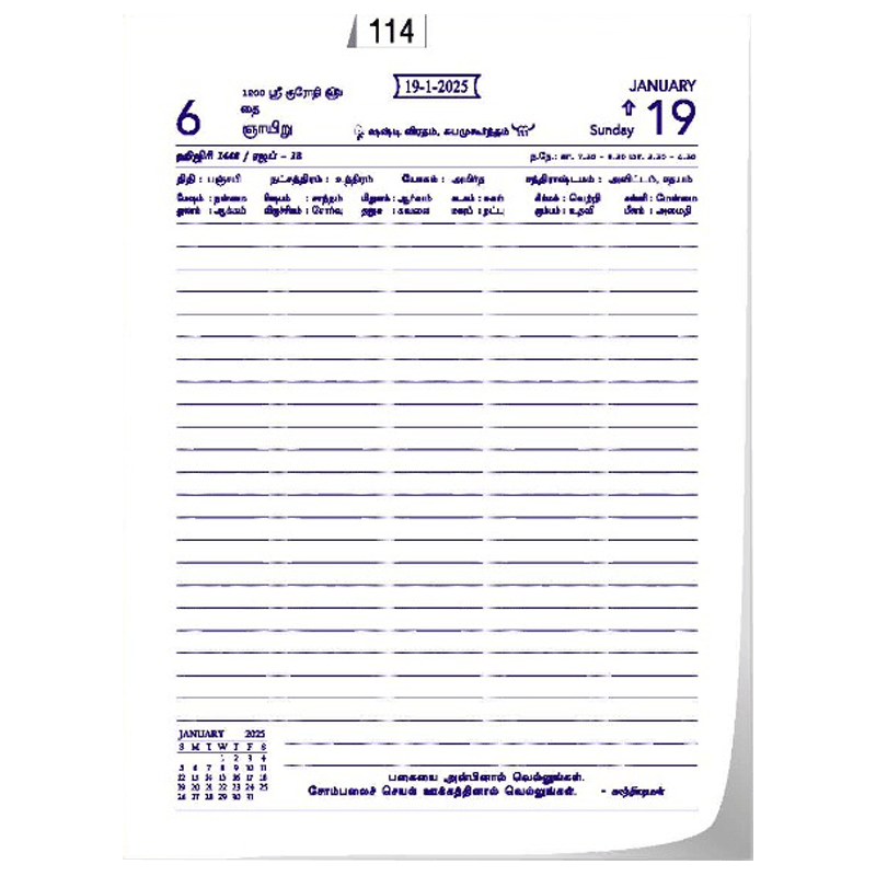 One day to a page (Sunday Separate) With proverbs & colour design laminated cover and hard bound binding 7 " X 9 ½ " (approx.)