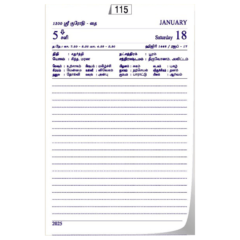 Platinum Series (Agasthiya) 511,512 5 ¼ " X 8 ¼ " (approx.) One day in a page Sat & Sunday Clubbed. Leather Finish