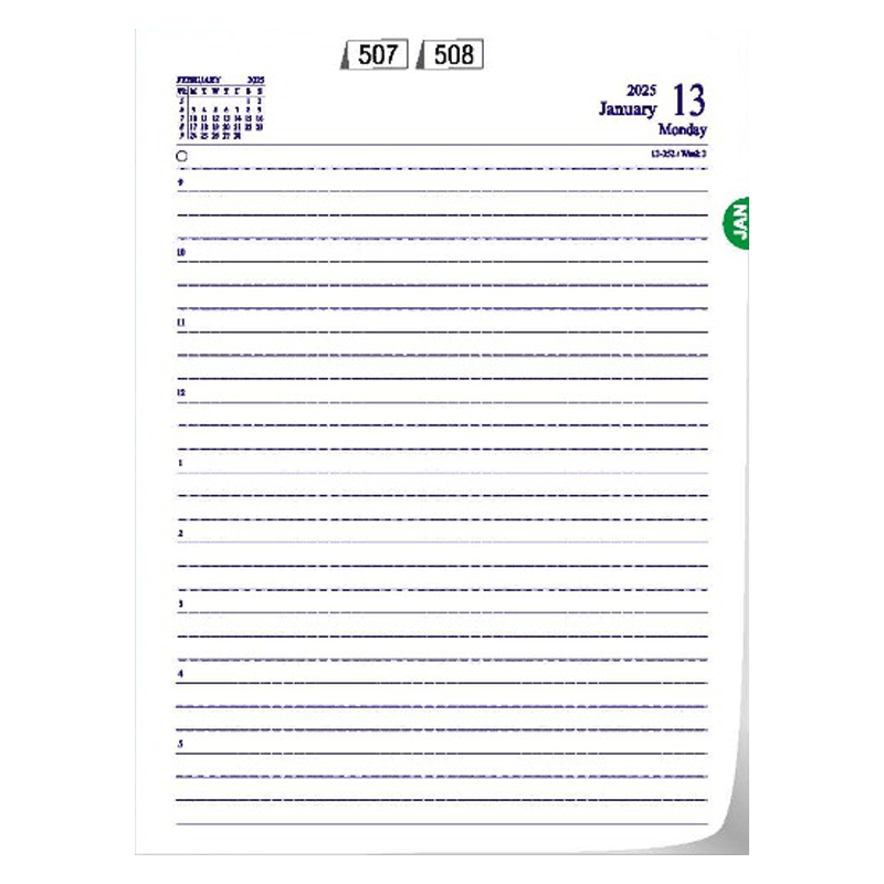 Platinum Series (Global) 507,508 7 " X 9 ½ " (approx.) One day in a page (Sat & Sunday Clubbed) Leather Finish with month wise Die Cut